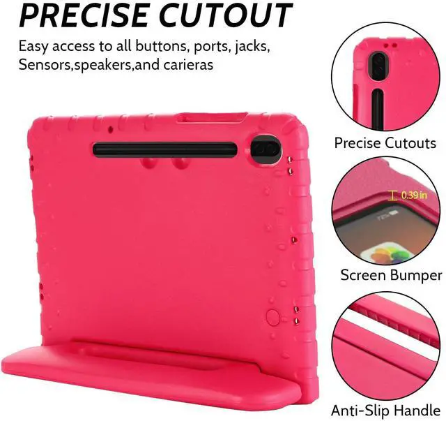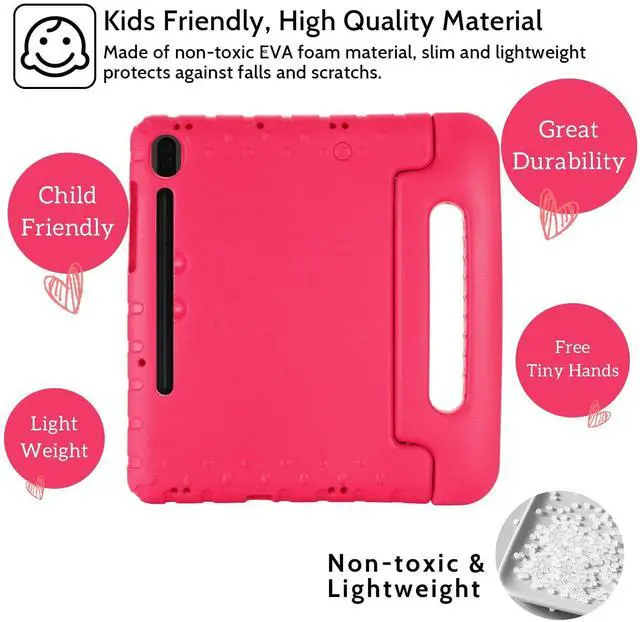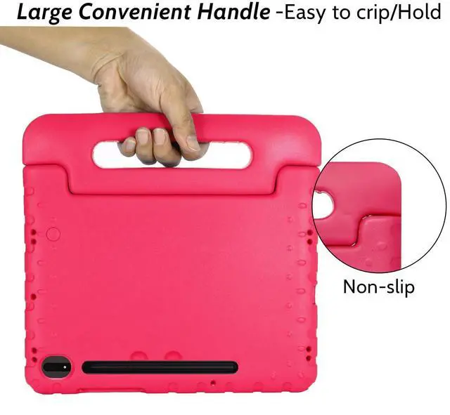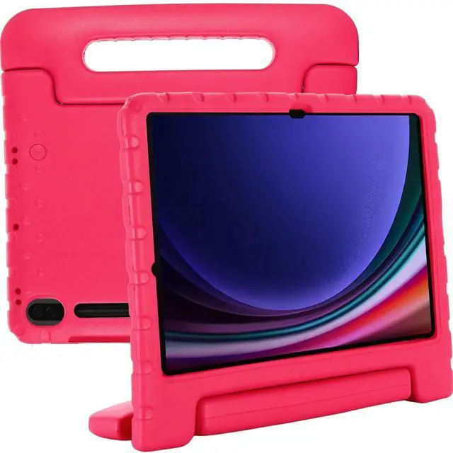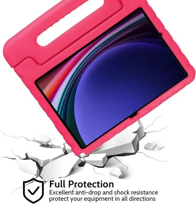Made from durable, lightweight, kid-safe and shock-resistant eva foam that it fully covers the back, sides and extend the surface of the Galaxy Tab S9 FE 10.9 Inch screen, safely protects your Galaxy Tab S9 FE/ S9 against bumps and drops. Its soft foamy exterior makes it ultra child-friendly. Made of EVA Material, easy to clean. Portable Adjustable Handle Converts into Stand for Movies or TypingAnti-slip large handle is designed for comfortable one handed grip for Samsung s9 fe tablet case for kidsSuper lightweight so your child can carry the Galaxy Tab S9 11 Inch case to play at school and home easily.