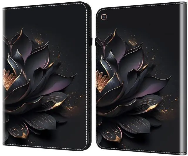 Dteck for Galaxy Tab A 10.1" 2019 Release (Model SM-T510/T515/T517) Folio Case with Card Slots/Stand/Elastic Band Closure/Pen Loop Holder - Faux Leather/TPU Protective Slim Cute Cover (Black Flower)