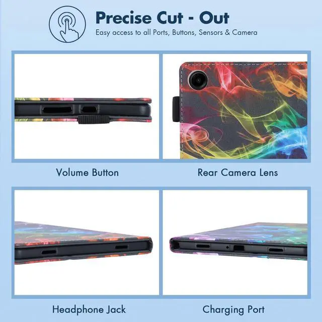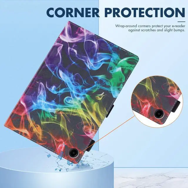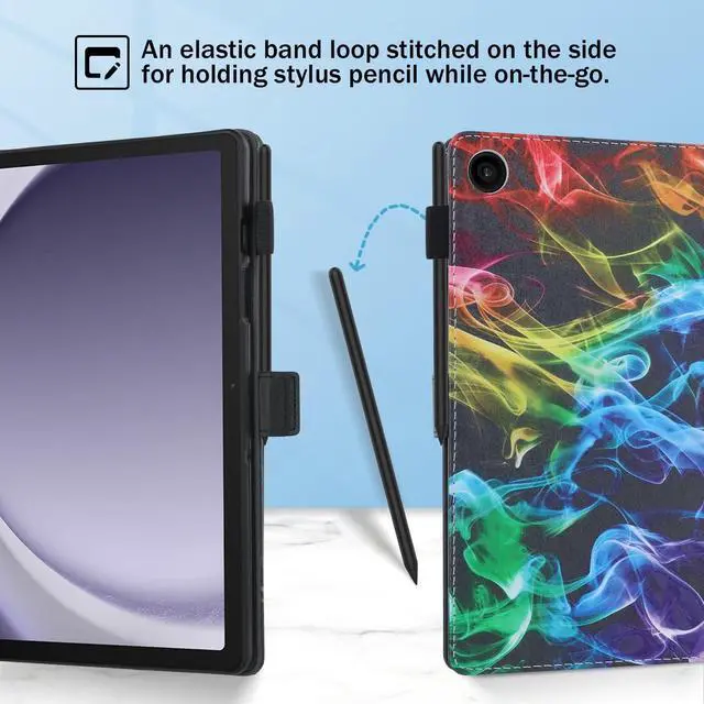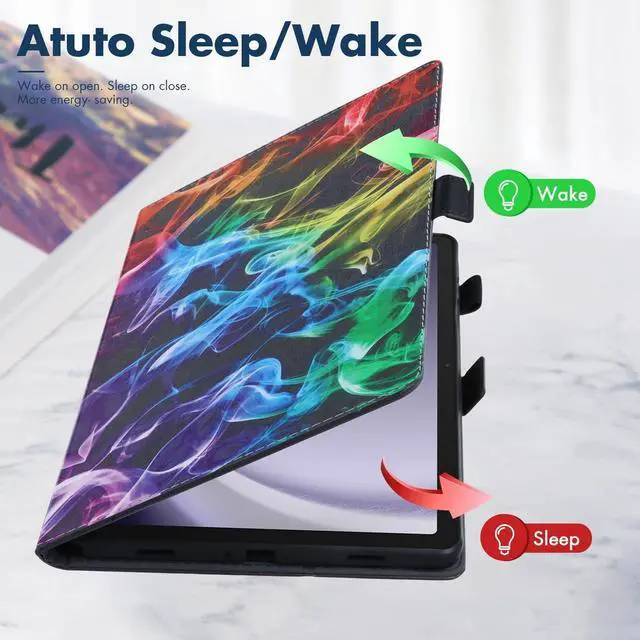 Case Features: protective smart tablet case with auto sleep wake is designed to automatically put your tablet to sleep when you close the case, and wake it up when you open the case. shockproof case is made from premium durable flexible silicone and scratch resistant faux leather material, lightweight and perfect fits, easy to put on and take off. tablet cover has a built-in magnetic strap for safely close your tablet when you do not use it, effectively prevent your expensive tablet from scratches, dust, fingerprints and accidental drops. folio case can be folded to create a stand, adjustable viewing angles, raised lines on left side are as supports for propping tablet up safely, great for user to use his/her tablet in landscape mode. card slots design is convenient to keep some important cards all in one place while on the go. built-in elastic S pen loop for allowing you to easily store and access your S Pen whenever you need it. cute cartoon pattern case, great nice functional tablet case for kids, children, youth, teen, adult, girls, boys, women, men.