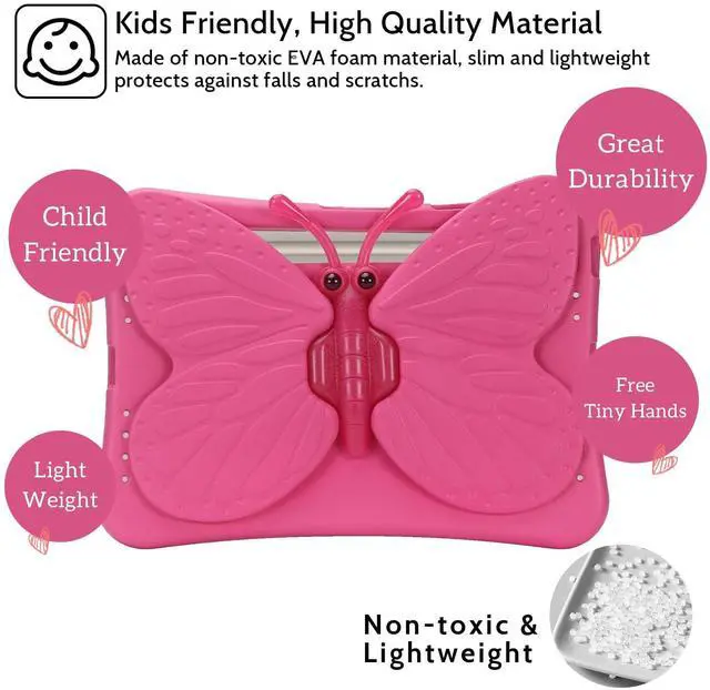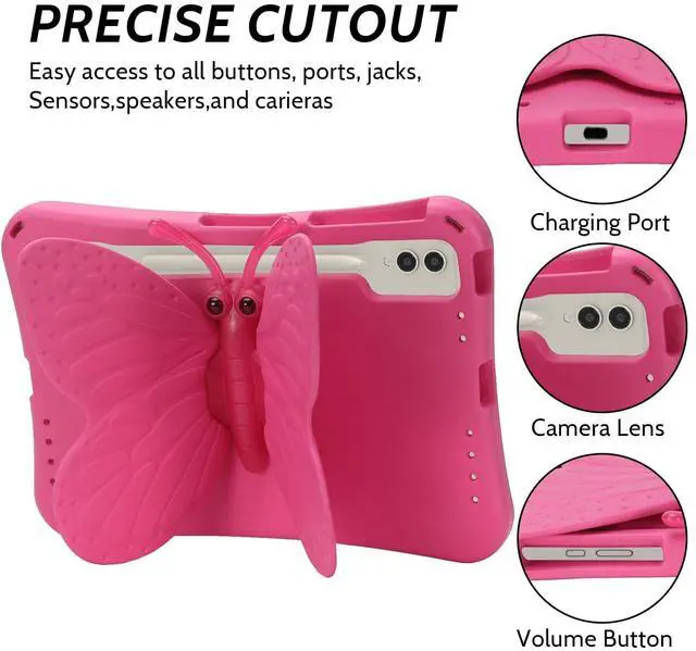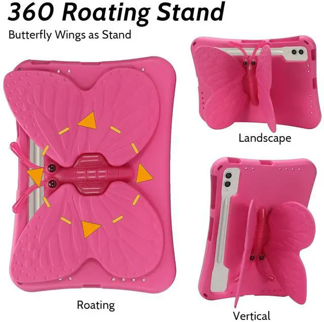 Features: - Made entirely of durable EVA foam rubber- Soft, squishy material is fun and safe for children- Cutouts for clear access to all buttons, ports, speakers and rear-camera- Butterfly wings double as a tablet stand support for viewing in landscape and vertical format- Durable foam design protects against drops and impacts- Raised screen bezel for extra protectionSuper Full ProtectionKids iPad case is made of EVA foam bumper which will cover the screen surface and camera with extra 5mm thickness to prectect them from scratch and impactbrPrecise CutoutsCutouts for clear access to all buttons, ports, speakers and rear-cameraCarrying HandleThe antenna of the butterfly usually use as carrying handle. Easy to hold and carry even for toddlers who are still preschoolers. Package List1 x Dteck Galaxy Tab S10+/S9 fe plus/s9+/S8+/S7+/S7 FE Case1 x Dteck Brand Cleaning Cloth1 x Random Color Stylus Pen