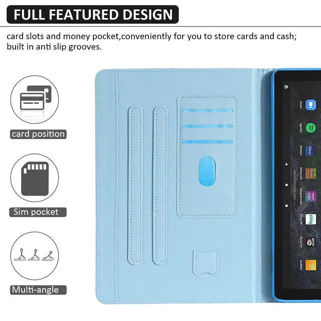 Compatibility - Perfectly compatible with All-New Kindle Fire HD 10 and Fire HD 10 Plus Tablet (11th Generation, 2021 Release) Only, NOT compatible with any other Kindles or Fire tablets. ^^ Adjustable Angles - Three angles are provided for satisfying your viewing and typing needs, free your hands for other entertainments. ^^ Auto Wake/Sleep - Built-in magnetic strip, automatically wakes or puts your tablet to sleep when the lid is opened and closed. Protects and extends battery life. ^^ Premium MaterialMade of durable PU (synthetic) leather with soft silicone TPU interior to prevent your HD 10 Plus tablet from scratches, dust and damage.