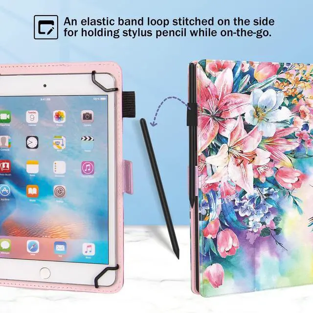 Hand Strap]: durable case with elastic hand strap, could hold the tablet safely with one hand when fold the flip case.