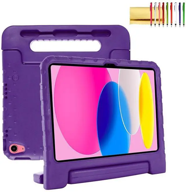 (Model: A2757/A2777/A2696). Please check your iPad model number on the back before purchasing. Precise cutout, easy for operationRaised screen bezel protects glass from breaking & shattering on frontal impact. Precise cut-outs for charging port, speakers, cameras, earphone, volume and power buttons, allows you easy access to all features without removing the case. For iPad 10th generation 10.9 tablet Case with Pencil HolderBuilt-in Apple Pencil holder tightly holding your Apple pencil and easy to put in and the middle bareness part design of the holder allowing to pull your pencil out easilySafety/Lightweight DesignSlim and lightweight design adds minimal bulk while offering your device great protection. Made from durable, lightweight, kid-safe and shock-resistant eva foam that it fully covers the back, sides and extend the surface of the iPad 10.9 Inch 2022 screen, safely protects your ipad 10.9" against bumps and drops. Its soft foamy exterior makes it ultra child-friendly. Made of EVA Material, easy to clean. Portable Adjustable Handle Converts into Stand for Movies or TypingAnti-slip large handle is designed for comfortable one handed grip for iPad 10th Generation Kids CaseSuper lightweight so your child can carry the iPad 10th Generation 2022 case to play at school and home easily.