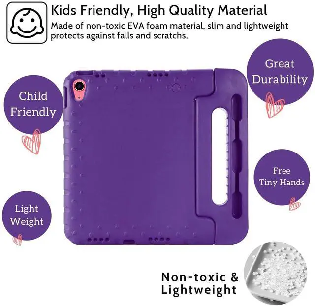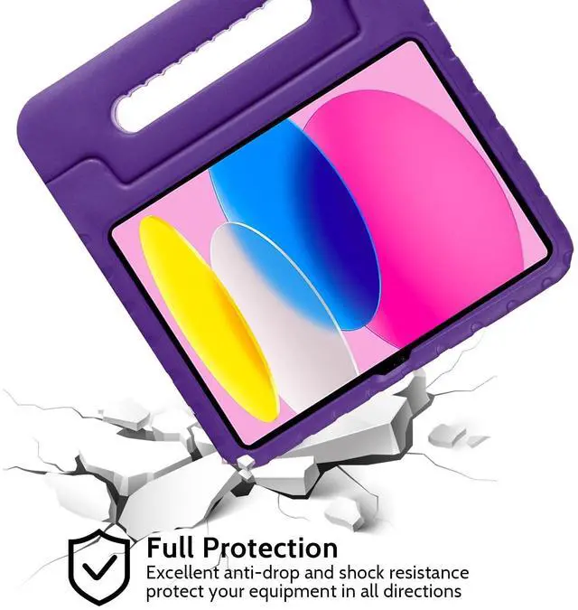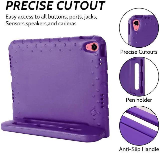 • Rugged & Solid Shockproof DesigniPad 10.9 inch kids case made of kid-friendly, anti-slip, friendly and shock absorbing EVA flexible foam,protects your iPad 10th gen 2022 from scratches and accidental drops,bumps,and impacts.