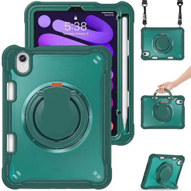 ^^ [Shock-absorbing Case]: shockproof bumper case for iPad mini 8.3 -inch, made from hard plastic and soft silicone materials, and designed with raised edges around screen and camera, absorbs impact and protects the iPad from scratches, shocks, drops and bumps. Built-in Pencil Holder.