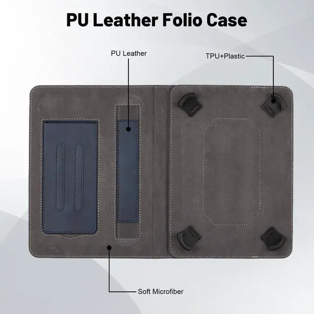• PU leather shell tablet case, made from faux leather, microfiber, plastic and silicone, slim fits and lightweight, easy to carry around. Built-in a secure magnetic strap closure, ensures that your device stays securely in place when not in use, preventing any accidental openings or damage.