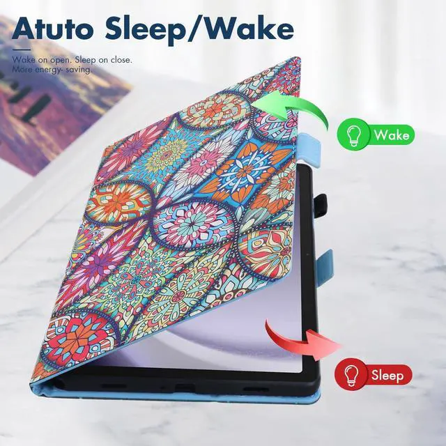 Case Features: protective smart tablet case with auto sleep wake is designed to automatically put your tablet to sleep when you close the case, and wake it up when you open the case. shockproof case is made from premium durable flexible silicone and scratch resistant faux leather material, lightweight and perfect fits, easy to put on and take off. tablet cover has a built-in magnetic strap for safely close your tablet when you do not use it, effectively prevent your expensive tablet from scratches, dust, fingerprints and accidental drops. folio case can be folded to create a stand, adjustable viewing angles, raised lines on left side are as supports for propping tablet up safely, great for user to use his/her tablet in landscape mode. card slots design is convenient to keep some important cards all in one place while on the go. built-in elastic S pen loop for allowing you to easily store and access your S Pen whenever you need it. cute cartoon pattern case, great nice functional tablet case for kids, children, youth, teen, adult, girls, boys, women, men.