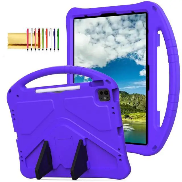 Dteck for iPad Air 11 Inch M2 2024/iPad Pro 11 inch 2024 M4 Kids Case with Pencil Holder, Kiddie Lightweight Shockproof Full-Body Handle Stand EVA Tablet Protective Girl Boy Kids Friendly Case,Purple
