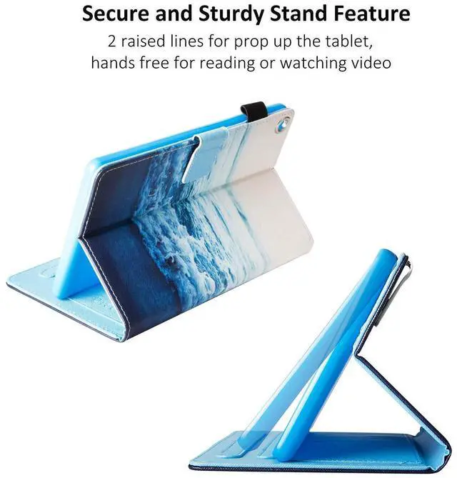 Stand Function]: pu leather flip case can be folded to create stand function, allows you to prop up your fire hd 8 (8th/7th/6th generation) tablet in landscape orientation for comfortable hands-free viewing, easier to reading, watching videos, or video calling. The built-in raised lines are as supports for propping up device, anti slip.