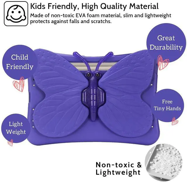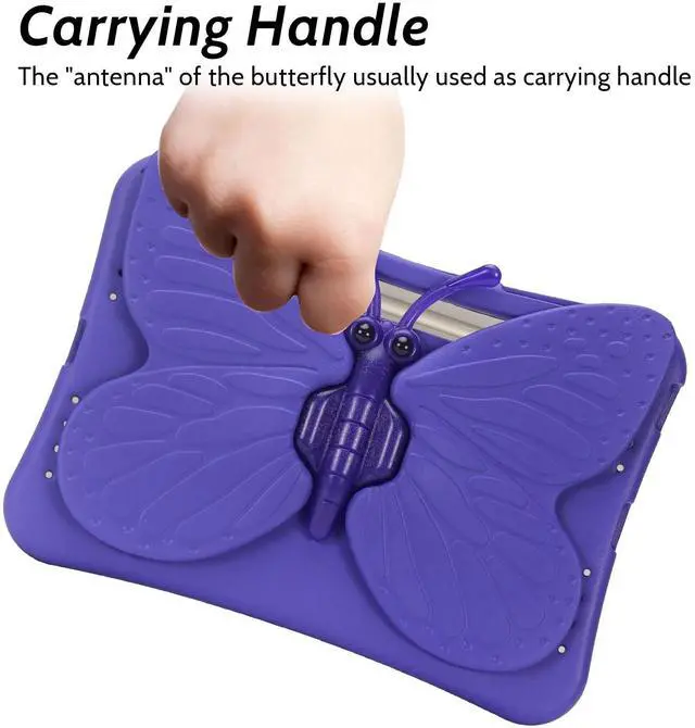 Features: - Made entirely of durable EVA foam rubber- Soft, squishy material is fun and safe for children- Cutouts for clear access to all buttons, ports, speakers and rear-camera- Butterfly wings double as a tablet stand support for viewing in landscape and vertical format- Durable foam design protects against drops and impacts- Raised screen bezel for extra protectionSuper Full ProtectionKids iPad case is made of EVA foam bumper which will cover the screen surface and camera with extra 5mm thickness to prectect them from scratch and impactbrPrecise CutoutsCutouts for clear access to all buttons, ports, speakers and rear-cameraCarrying HandleThe antenna of the butterfly usually use as carrying handle. Easy to hold and carry even for toddlers who are still preschoolers. Package List1 x Dteck Galaxy Tab S10+/S9 fe plus/s9+/S8+/S7+/S7 FE Case1 x Dteck Brand Cleaning Cloth1 x Random Color Stylus Pen