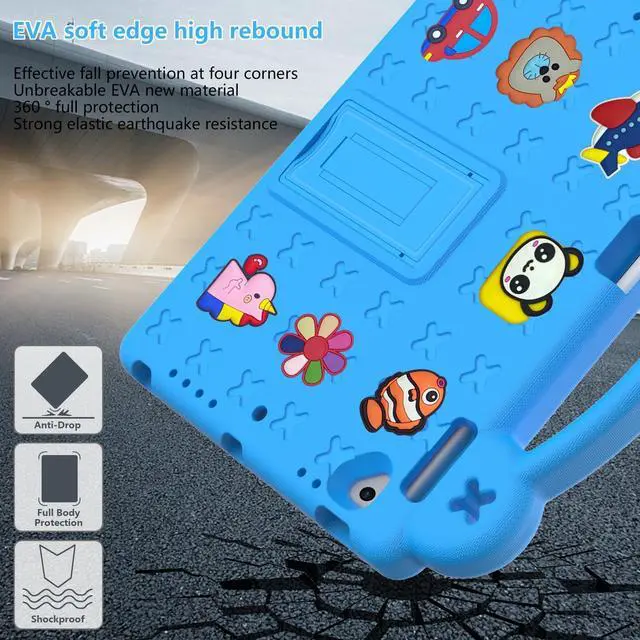 Features: - iPad 9.7" 2018 6th Gen kids case with environmental safe matrial, that is kid friendly. - With precise cutouts for every features of ipad 9.7" 2017 5th Gen. - Lightweight and super shockproof iPad Air 9.7" kids case. Easy TO HandleEasy to handle, catch with you to everywhere you need. The case completely covers your tablet, that protect your iPad Air 2/1 9.7 nch from daily scratching, dropping and other uses. Kickstand and Multi-Angle WatchingFoldable built in kickstand, makes your iPad Pro 9.7 with multi-angle watching, when your child is studying or when they are watching a movie, just without hand catching. Gifts for ChildrenMaybe you are looking for a sturdy tablet case for your baby. Lightweight, strong protection, easy to carry, environmentally safe, very suitable for children, boys, girls, kindergartens, schools. Choose from a variety of colors and come and pick a Christmas present or birthday present for your baby.