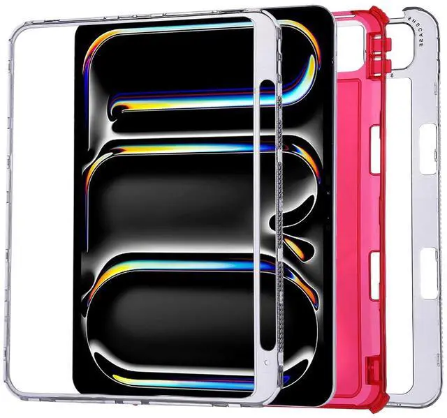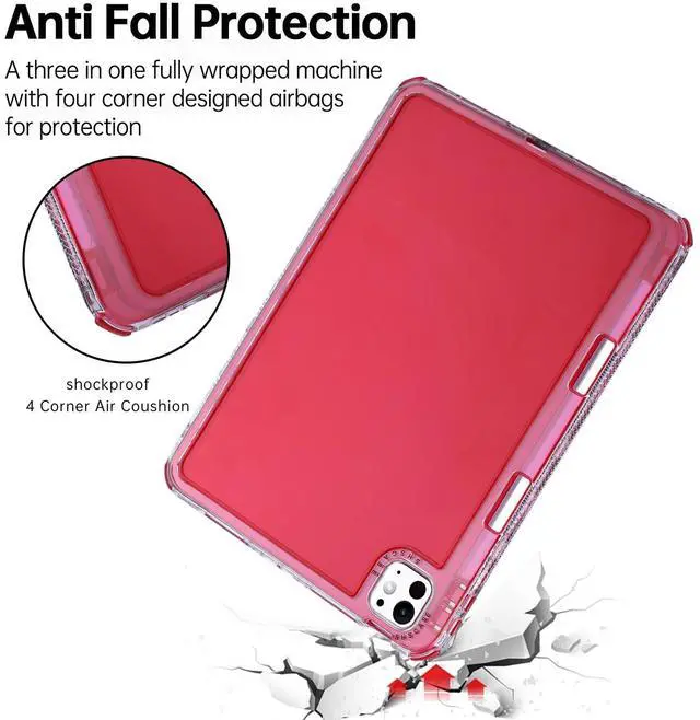 [Durable and Protective]: This clear back cover case for iPad Air/Pro is made from silicone and plastic material, shock-absorbing TPU back panel and hard plastic frame edge, 3 layers design. Designed with raised edges around screen and camera, and reinforced corners, provides great protection against scratches, accidental drops and bumps.