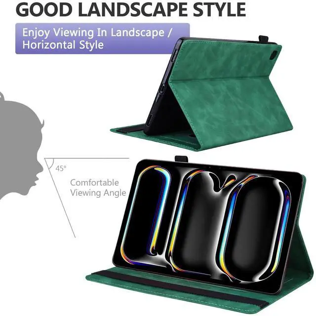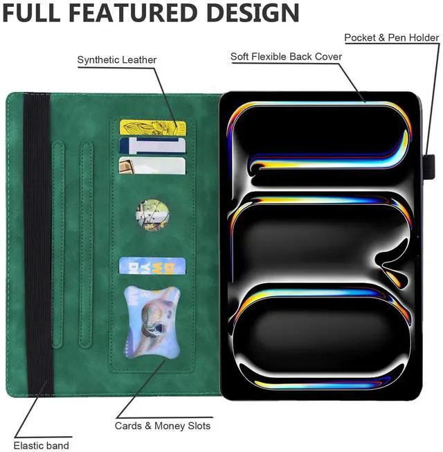 Product FeaturesBuilt-in Kickstand: Adjustable Standing; Folio flip stylish case for iPad Air 13-inch with anti-slip slots, the stand cover can set up multiple stand angles.