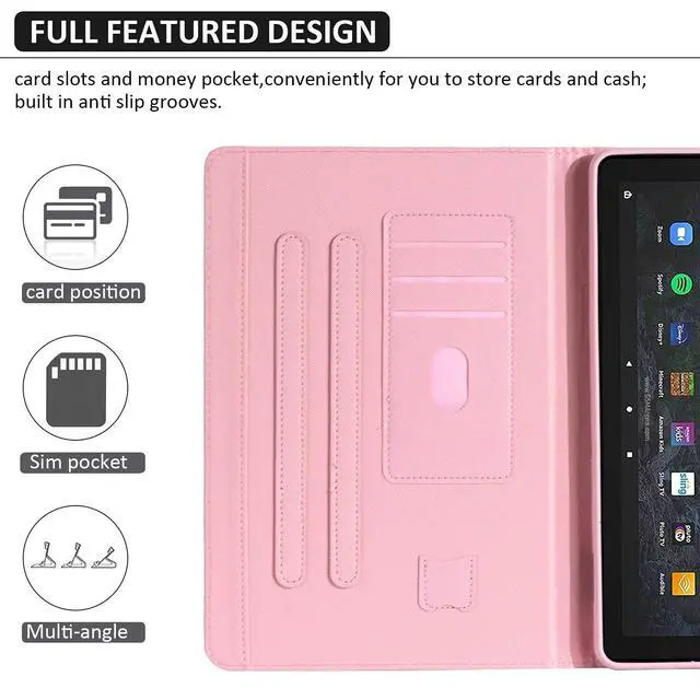 Compatibility - Perfectly fit for All-New Kindle Fire HD 10 and Fire HD 10 Plus Tablet (11th Generation, 2021 Release) Only. Access to all features and controls. NOT compatible with any other Kindles or Fire tablets. ^^ Adjustable Angles - Three angles are provided for satisfying your viewing and typing needs, free your hands for other entertainments. ^^ Auto Wake/Sleep - Built-in magnetic strip, automatically wakes or puts your tablet to sleep when the lid is opened and closed. Protects and extends battery life. ^^ Premium MaterialMade of durable PU (synthetic) leather with soft silicone TPU interior to prevent your HD 10 Plus tablet from scratches, dust and damage.