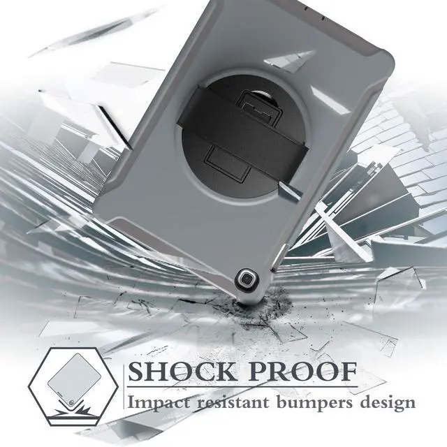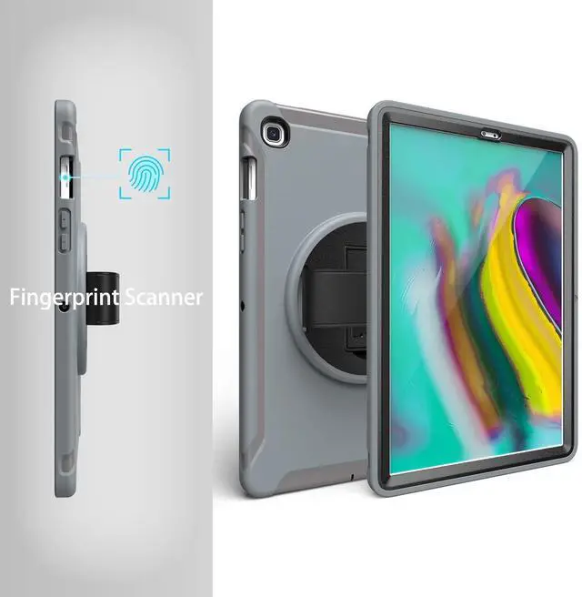 ReleaseModel: SM-T720/SM-T725/SM-T727360 Rotatable KickstandKeep the Samsung Galaxy Tab S5e Tablet Steady for typing or watching and Hands-free viewing angle for all directions. The Galaxy Tab Galaxy Tab S5e Case supports our tablet both vertically and horizontally, allowing us to always use it at a comfortable angle. 360 Rotatable Hand StrapThe Hand Strap is made from premium soft fabric, adjustable elasticity, hold easily and prevent slippage, fit for both kids and adults. When drawing or communicating with people, we need a hand strap to help us hold the Samsung Galaxy Tab S5e Tablet 10.5 inch securely and prevent accidental drops. Three-Layer Full Body ProtectionThe Galaxy Tab S5e Shockproof Case made of durable Hard PC+Soft Silicone, 3-Layer Full Body protection structure, provide a perfect protection, protects your Galaxy Tab S5e Tablet from Scratches and accidental Drops, Bumps and Impacts. The raised bezel on the front cover provides protection for your screen, while the back cover acts as a shield against scratches, drops and other damage. Both fit together snuggly for reliable defense. Easy to All the FunctionsAll the openings, ports and buttons are accessible without removing this protective tablet case, precise cutouts ensure that all the ports are where they should be, full access to every feature and control of your Samsung Galaxy Tab S5e 2019.