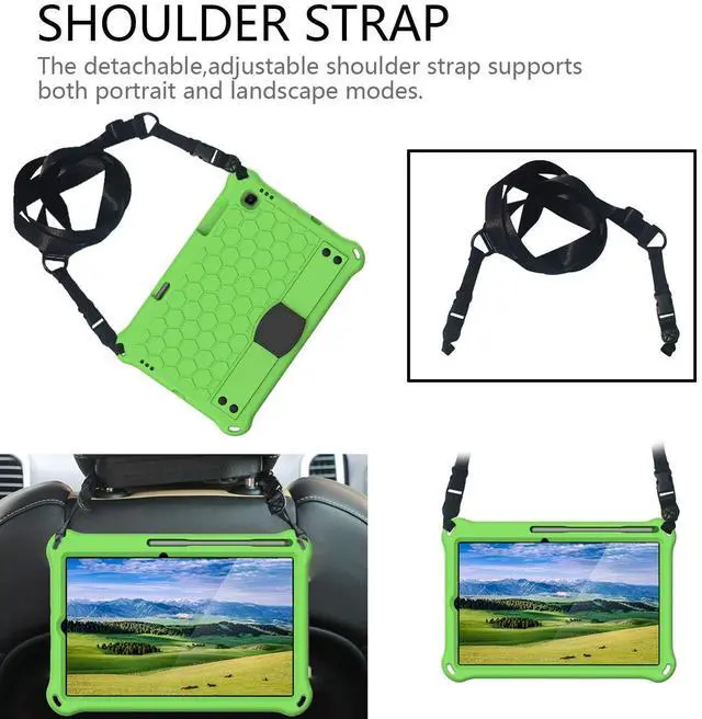 One of the standout features is the 2-in-1 grip hand strap that allows you to hold your tablet securely with one hand while reducing hand fatigue during prolonged use. The strap also functions as a kickstand, supporting landscape viewing angles, perfect for video watching, video calls, reading, or online learning. Designed with mobility in mind, the case includes a detachable and adjustable shoulder strap, giving you a convenient hands-free carrying option. Whether you're commuting, traveling, or working in the field, the tablet shoulder strap makes it easy to keep your device accessible and secure on the go.
