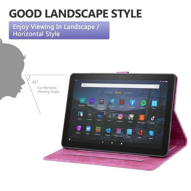 Adjustable Angle: Built-in 2 Anti-slip strips provide firm support for your tab. Cover for fire hd 10 tablet 2021 ensures the case to be a stand with two angles. Two Angles Are Provided For Satisfying Your Viewing And Typing Needs.