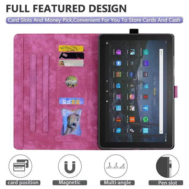 Special Design: The pencil holder on the back can be used to carry the touch screen pen. The interior open pockets can be used to store credit cards, device, photos, business cards, notes or bills while on the go. Stylish color and functional design would work well for men or womenLightweight and Travel-friendly Lightweight case gives your device maximum protection without adding extra bulk. Put it in your bag and you can enjoy reading anytime and anywhere. Designed for Full Protection & Secure Closure - Soft TPU back shell protect your Fire HD 10 2023/2021 Tablet from shocks, drops and impacts. Magnet secure the case closure, it's easy and safe to snap on and off.
