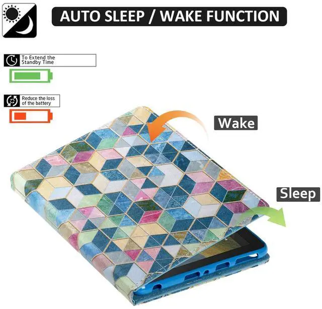 ^^ [Smart Folio Case]: Built-in magnet supports auto sleep/wake function, wakes your tablet when opened the magnetic flip case and puts it to sleep when closed, helping save battery life and offering effortless everyday convenience. ^^ [Fold Case with