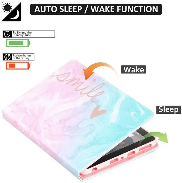 ^^ [Smart Folio Case]: Built-in magnet supports auto sleep/wake function, wakes your tablet when opened the magnetic flip case and puts it to sleep when closed, helping save battery life and offering effortless everyday convenience. ^^ [Fold Case with