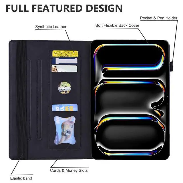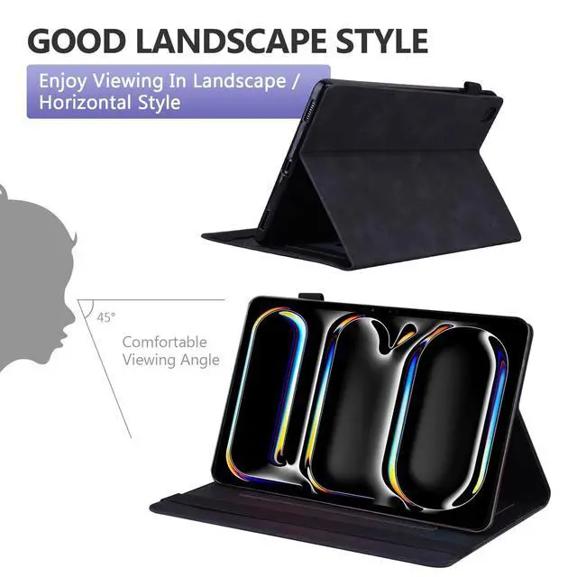 Product FeaturesBuilt-in Kickstand: Adjustable Standing; Folio flip stylish case for iPad Air 13-inch with anti-slip slots, the stand cover can set up multiple stand angles.