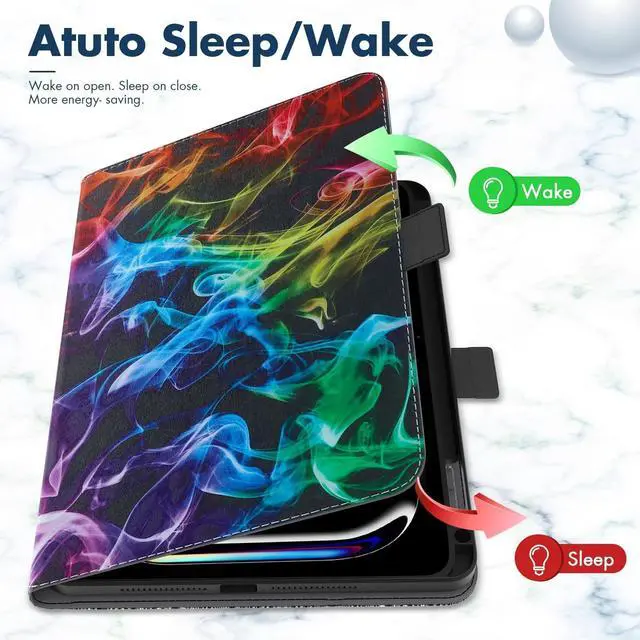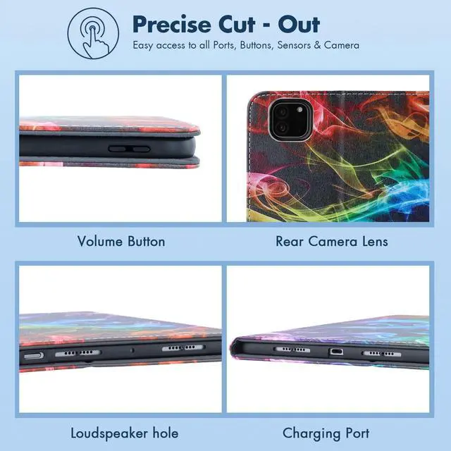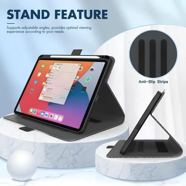 Features: [Durable Material] - Protective case for iPad Pro 11" (M4/M5), made from scratch-resistant faux leather and flexible silicone (TPU) materials, slim fits and lightweight, easy to install and remove. [Adjustable Stand] - The folio design tablet case for iPad pro 11" (M4/M5) can be folded and create a stand, allowing you to easily prop up your device for hands-free viewing in landscape orientation, perfect for watching videos, video calls, or browsing online comfortably. Suitable for both work and leisure activities. [Auto Sleep Wake] - Smart folio case for iPad pro 11" (M4/M5), supports auto sleep/wake functionality, instantly waking your tablet when opened and putting it to sleep when closed to save power. [Built-in Pencil Holder] - The inner TPU case with pencil slot securely stores your stylus when not in use. It keeps your pen within easy reach and prevents loss, making it perfect for note-taking, drawing, or working on the go. [Built-in Elastic Hand Strap] - Allows you to securely grip your tablet when you fold the case to use it like a book. [Full Coverage Protection] - PU leather folio case with a magnetic strap closure ensures that your tablet is securely fastened inside the case, offering all-around protection to protect your device against scratches, drops, shocks, impacts, and daily wear.