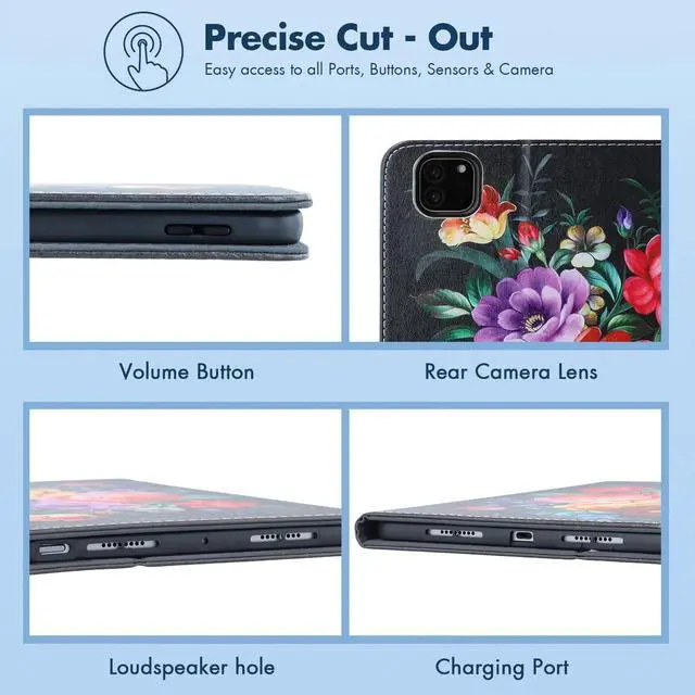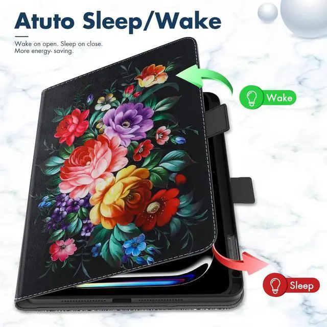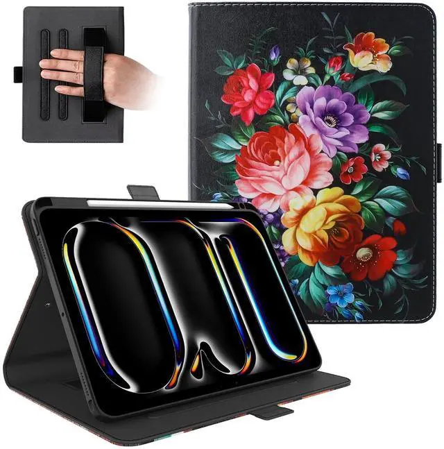 Features: [Durable Material] - Protective case for iPad Pro 11" (M4/M5), made from scratch-resistant faux leather and flexible silicone (TPU) materials, slim fits and lightweight, easy to install and remove. [Adjustable Stand] - The folio design tablet case for iPad pro 11" (M4/M5) can be folded and create a stand, allowing you to easily prop up your device for hands-free viewing in landscape orientation, perfect for watching videos, video calls, or browsing online comfortably. Suitable for both work and leisure activities. [Auto Sleep Wake] - Smart folio case for iPad pro 11" (M4/M5), supports auto sleep/wake functionality, instantly waking your tablet when opened and putting it to sleep when closed to save power. [Built-in Pencil Holder] - The inner TPU case with pencil slot securely stores your stylus when not in use. It keeps your pen within easy reach and prevents loss, making it perfect for note-taking, drawing, or working on the go. [Built-in Elastic Hand Strap] - Allows you to securely grip your tablet when you fold the case to use it like a book. [Full Coverage Protection] - PU leather folio case with a magnetic strap closure ensures that your tablet is securely fastened inside the case, offering all-around protection to protect your device against scratches, drops, shocks, impacts, and daily wear.