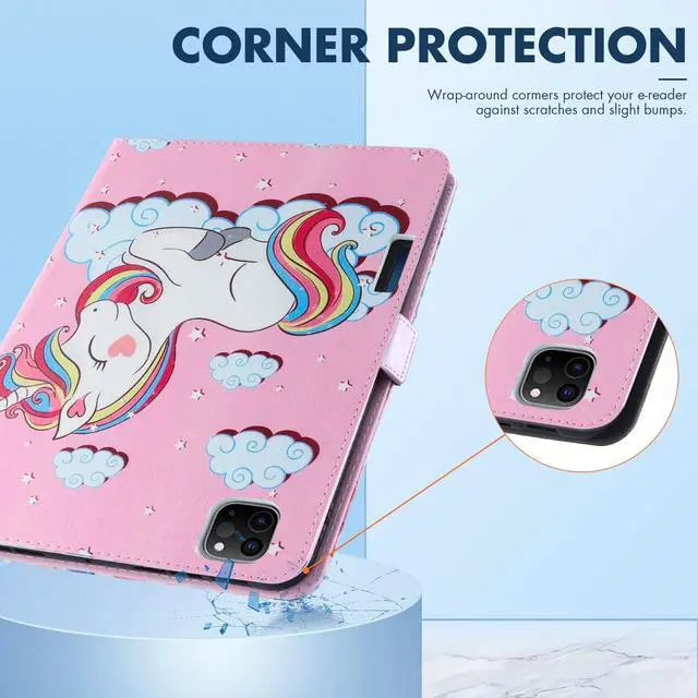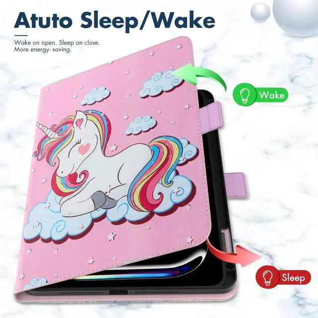 Dteck for iPad Pro 13" M4/M5 (2024/2025) Smart Folio Case with Adjustable Stand/Auto Sleep Wake/Pencil Holder/Hand Strap/Magnetic Strap Closure, PU Leather Protective Cute Cover Shell, Pink Unicorn