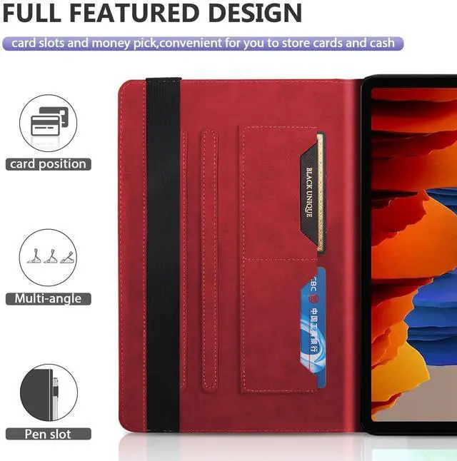 Product Features: Adjustable Standing; Folio flip stylish case for Samsung Galaxy Tab S9 FE with with anti-slip slots, which can set up multiple horizontal stand angles. Sturdy PU leather material and flexible TPU rubber back tough shell; Soft microfiber lining interior; protect your tablet screen and back body. Manual elastic band holds tablet closed securely while on the go. you have a strap on your hand to prevent the machine from falling out. Slim stylus slot pocket for your pen; Card Slots for your various credit cards, Full body protection Galaxy Tab S9 S8 S7 case. Drop proof and anti-scratch. Ultra thin and lightweight design, which is comfortable to hold, allows a full-screen view. impact resistant shell with heavy duty protection.