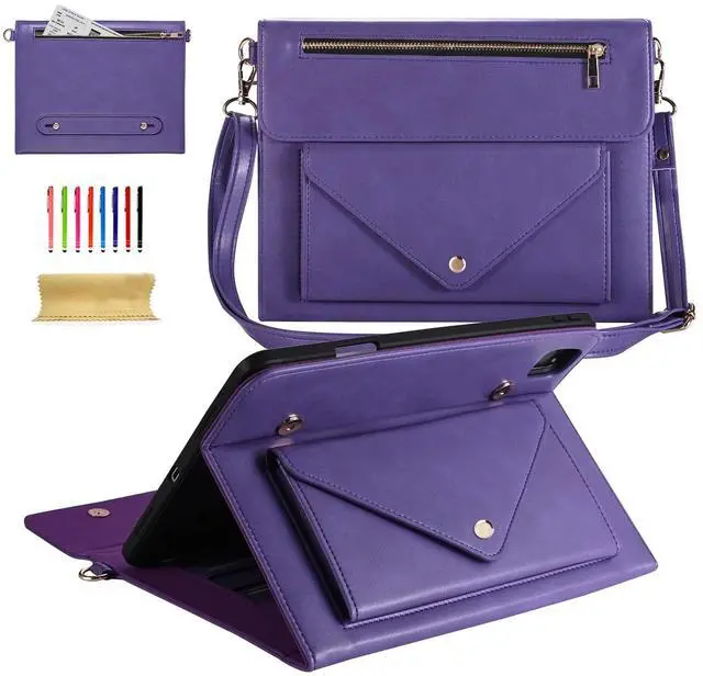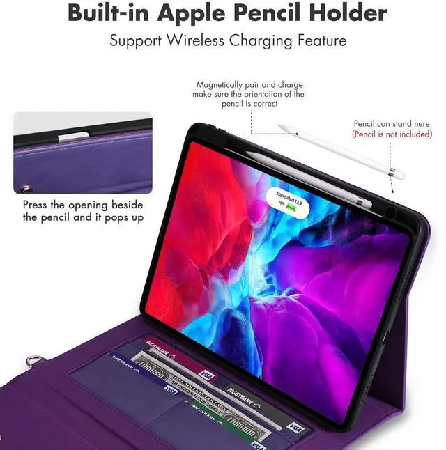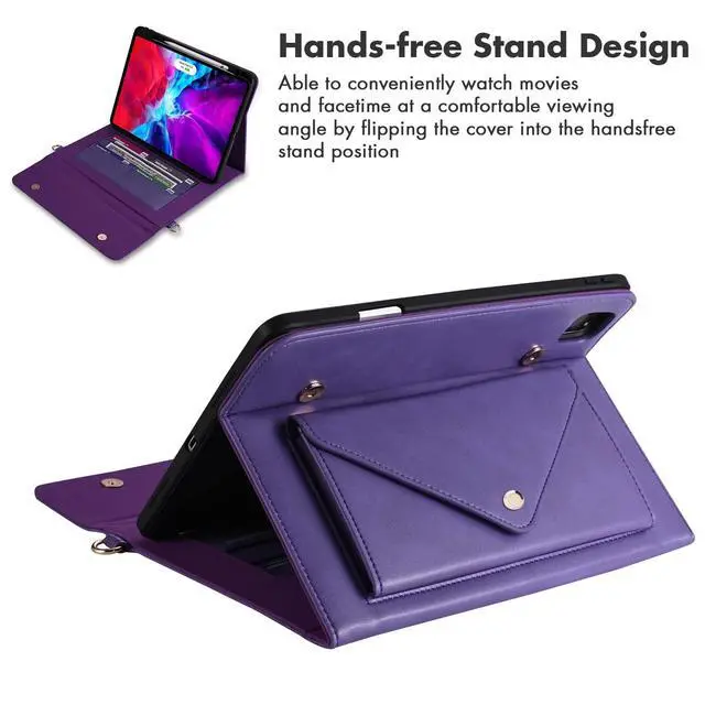 Hand/ Shoulder Strap]: Built-in PU leather hand strap (one-handed operation), multiple horizontal bracket angles for comfortable watching movie or typing. The shoulder belt is adjustable and removable. Your iPad Pro 12.9 inch can be slung diagonally or slung over one shoulder.