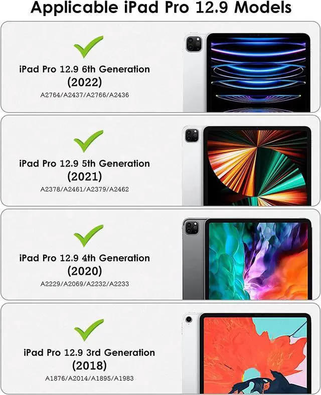 Air 13 inch 2024(Model: A2898/A2903/A2904), iPad Pro 12.9 inch 6th generation 2022 (Model: A2436/A2437/A2764/A2766), iPad Pro 12.9 inch 5th generation 2021 (Model: A2378/A2379/A2461/A2462), iPad Pro 12.9 inch 4th generation 2020 (Model: A2229/A2232/A2233/A2069), iPad Pro 12.9 inch 3rd generation 2018 (Model: A1876/A1895/A1983/A2014) Tablet Only.