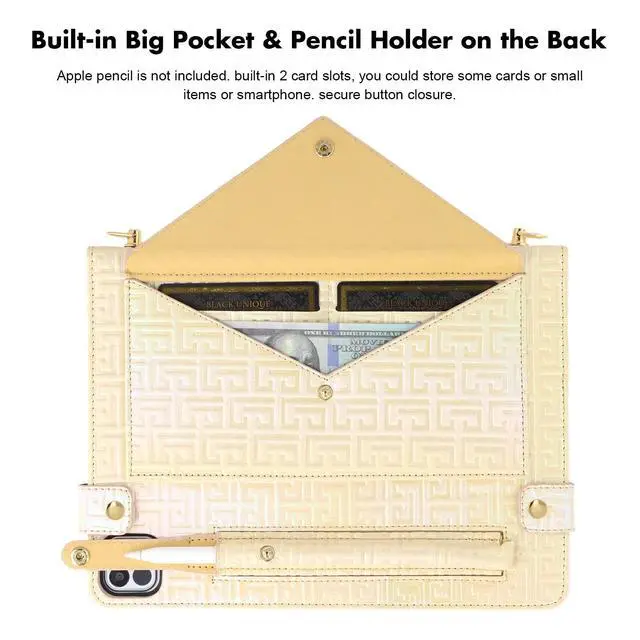 Wallet Bag Function]: The glitter gradient folio case for iPad pro 11" (M4/M5) is designed with multiple card slots, cash slots, a big pocket and a pencil holder, allows you to easily store IDs, credit cards, bills, receipts, earphones, charging cables, stylus, or small items with tablet together, perfect for commuting, traveling, or outdoor use.