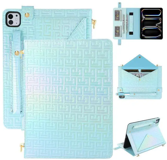 ^^ [Convenient Strap]: Shockproof case for iPad pro 11" (M4/M5) with an adjustable, detachable shoulder strap allows you to easily carry your device as a tablet bag or crossbody case. Snug fits and offers precise cutouts for the camera, speakers, and ports. Cute folio case with a glitter gradient finish for women, girls.