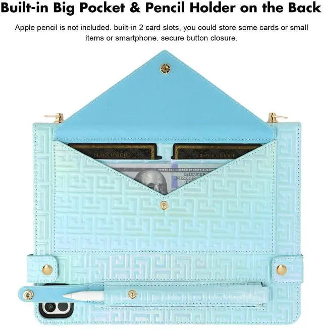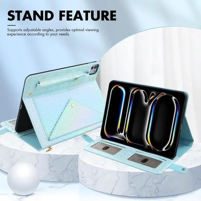 Wallet Bag Function]: The glitter gradient folio case for iPad pro 11" (M4/M5) is designed with multiple card slots, cash slots, a big pocket and a pencil holder, allows you to easily store IDs, credit cards, bills, receipts, earphones, charging cables, stylus, or small items with tablet together, perfect for commuting, traveling, or outdoor use.