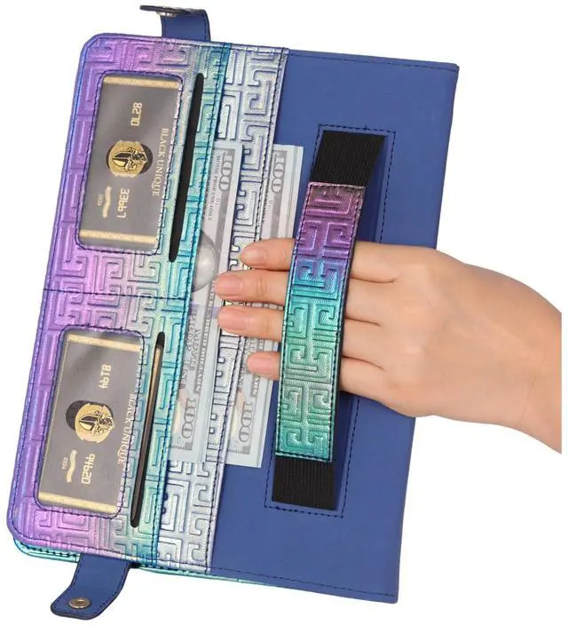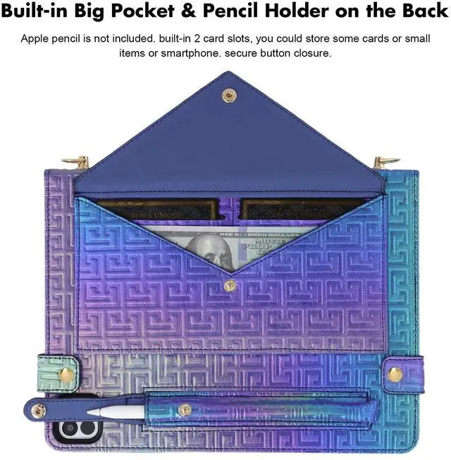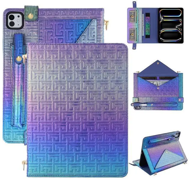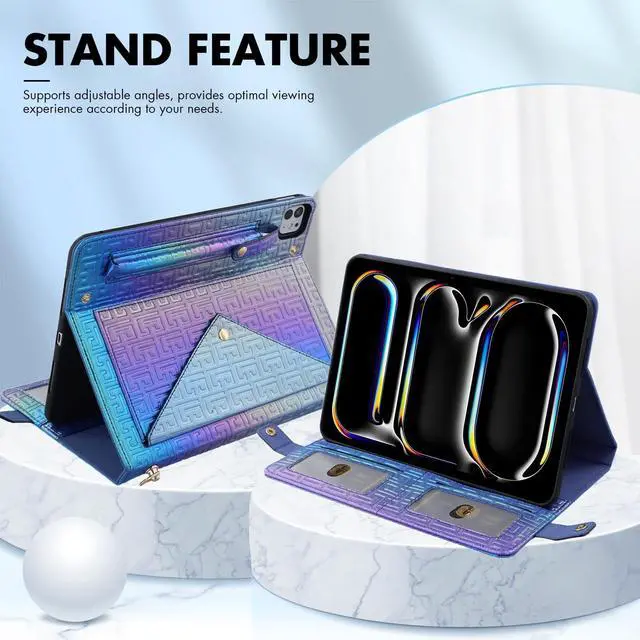 Wallet Bag Function]: The glitter gradient folio case for iPad pro 11" (M4/M5) is designed with multiple card slots, cash slots, a big pocket and a pencil holder, allows you to easily store IDs, credit cards, bills, receipts, earphones, charging cables, stylus, or small items with tablet together, perfect for commuting, traveling, or outdoor use.