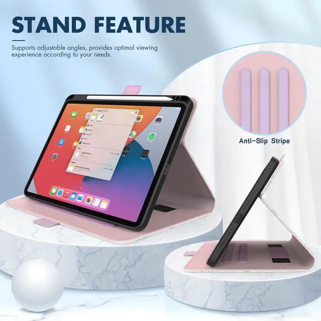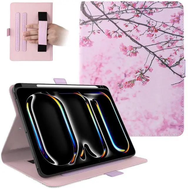 Features: [Durable Material] - Protective case for iPad Pro 11" (M4/M5), made from scratch-resistant faux leather and flexible silicone (TPU) materials, slim fits and lightweight, easy to install and remove. [Adjustable Stand] - The folio design tablet case for iPad pro 11" (M4/M5) can be folded and create a stand, allowing you to easily prop up your device for hands-free viewing in landscape orientation, perfect for watching videos, video calls, or browsing online comfortably. Suitable for both work and leisure activities. [Auto Sleep Wake] - Smart folio case for iPad pro 11" (M4/M5), supports auto sleep/wake functionality, instantly waking your tablet when opened and putting it to sleep when closed to save power. [Built-in Pencil Holder] - The inner TPU case with pencil slot securely stores your stylus when not in use. It keeps your pen within easy reach and prevents loss, making it perfect for note-taking, drawing, or working on the go. [Built-in Elastic Hand Strap] - Allows you to securely grip your tablet when you fold the case to use it like a book. [Full Coverage Protection] - PU leather folio case with a magnetic strap closure ensures that your tablet is securely fastened inside the case, offering all-around protection to protect your device against scratches, drops, shocks, impacts, and daily wear.