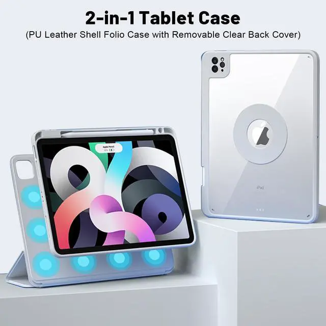 ^^ [Magnetic Detachable Design]: The trifold folio case for iPad pro 13" with a removable inner clear back cover, easily detach it for lightweight use or reattach it for full protection. The clear case offers protection against accidental drops and scratches while showcasing the original beauty of your tablet.