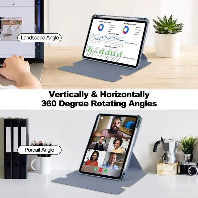 Sleep Wake]: Smart Folio Case for iPad Pro 11" (M4/M5), automatically wakes up or puts your tablet to sleep when you open or close the case, helping to save battery life while providing instant access when you open or close the lid. ^^ [Rotating