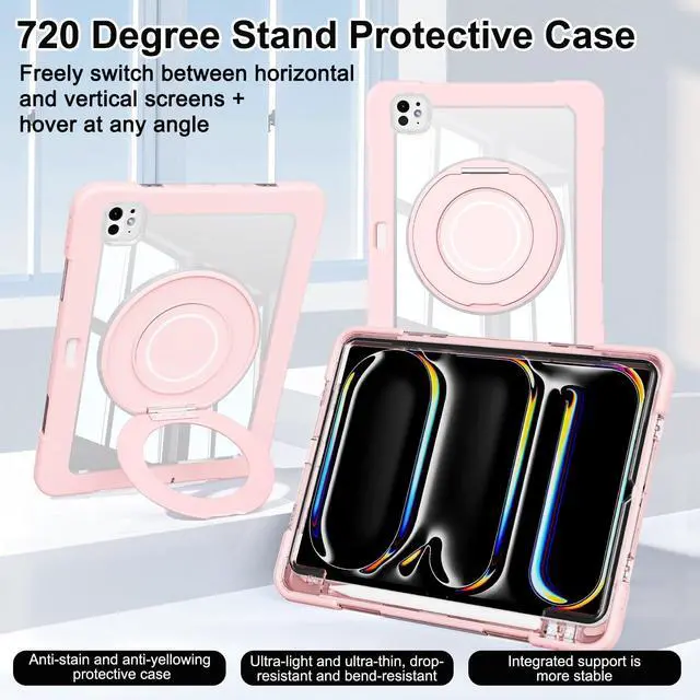 [Compatibility]: Dteck clear shockproof tablet case for Apple iPad Pro 11-inch (M4/M5) 2024/2025 release, model number (on the back cover): A2836/A2837/A3006/A3434/A3358/A3359. (Cover includes 1 stylus (random color), 1 cleaning cloth) ^^ [3