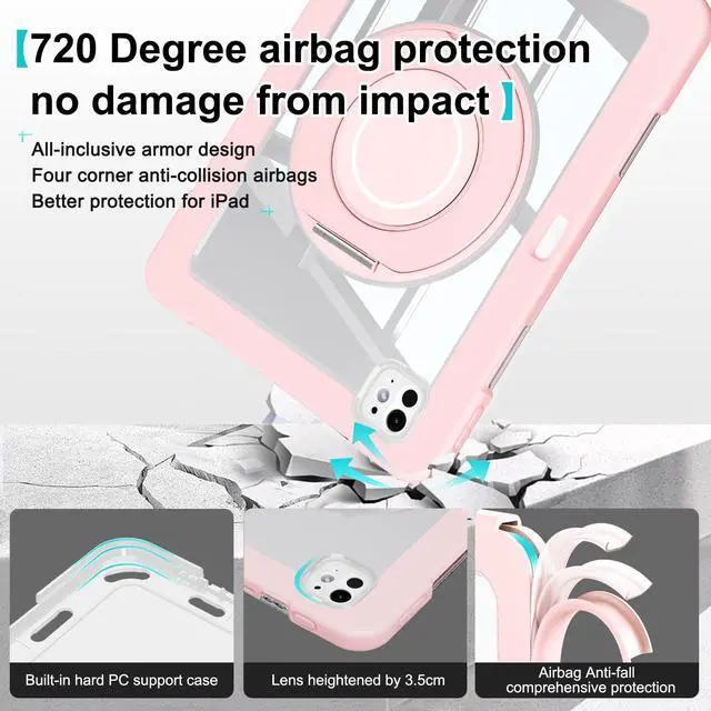 ^^ [Raised Edges/Reinforced Corners]: Hard shell clear case for iPad with raised bezels around the screen and camera, keeps both surfaces safely lifted off flat areas to prevent scratches and cracks. The reinforced corners enhance shock absorption, providing extra protection against accidental drops and daily impact.