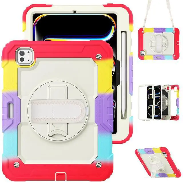Shoulder Strap]: Rugged case for iPad pro 11" (M4/M5) with a pencil holder for Apple Pencil, keeping stylus securely in place and within easy reach, perfect for note-taking, drawing, or everyday use. A detachable shoulder strap makes carrying tablet easier and convenient.