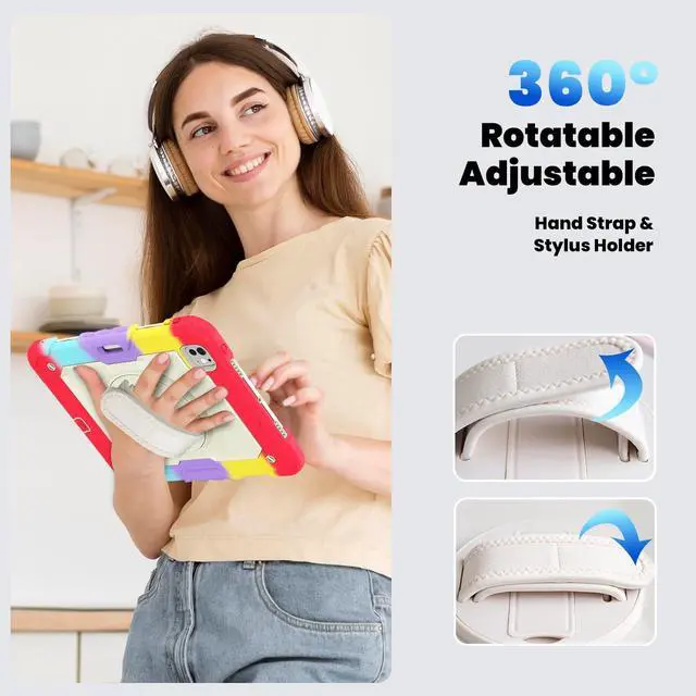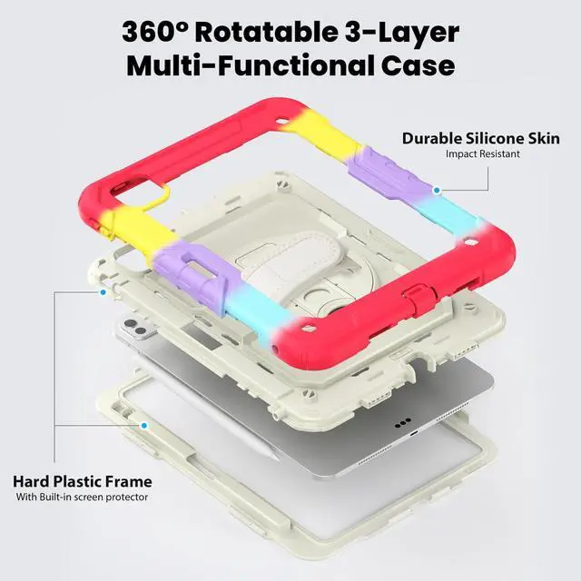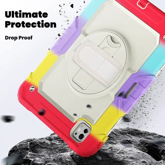 ^^ [Heavy Duty Protection]: Durable rugged construction for iPad provides military-grade drop protection, effectively absorbing shocks, keeping your tablet safe in classrooms, workplaces, or outdoor environments, perfect for women, men, and kids.