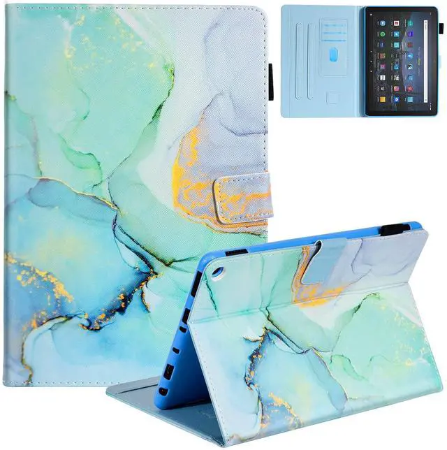 Compatibility - Perfectly compatible with All-New Kindle Fire HD 10 and Fire HD 10 Plus Tablet (11th Generation, 2021 Release) Only, NOT compatible with any other Kindles or Fire tablets. ^^ Adjustable Angles - Three angles are provided for satisfying your viewing and typing needs, free your hands for other entertainments. ^^ Auto Wake/Sleep - Built-in magnetic strip, automatically wakes or puts your tablet to sleep when the lid is opened and closed. Protects and extends battery life. ^^ Premium MaterialMade of durable PU (synthetic) leather with soft silicone TPU interior to prevent your HD 10 Plus tablet from scratches, dust and damage.