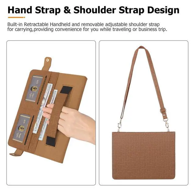 Hand Strap]: Built-in hand strap, the wristband strap helps you hold or use you tablet easily and comfortably, avoiding falling due to skidding. The sleeve handbag case also has a detachable shoulder strap, it helps you carry your tablet conveniently when you are at work, on a trip or outdoors. ^^ [Pocket