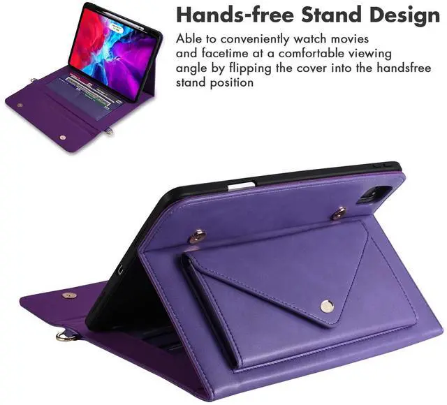 ^^ [Convenient Strap]: Protable case for iPad pro 13" with an adjustable, detachable shoulder strap allows you to easily carry your device as a tablet bag or crossbody case. Built-in a hand strap on back to provide added grip. Fold stand case, hands-free viewing in landscape mode, easy to watch videos, read, or video call.