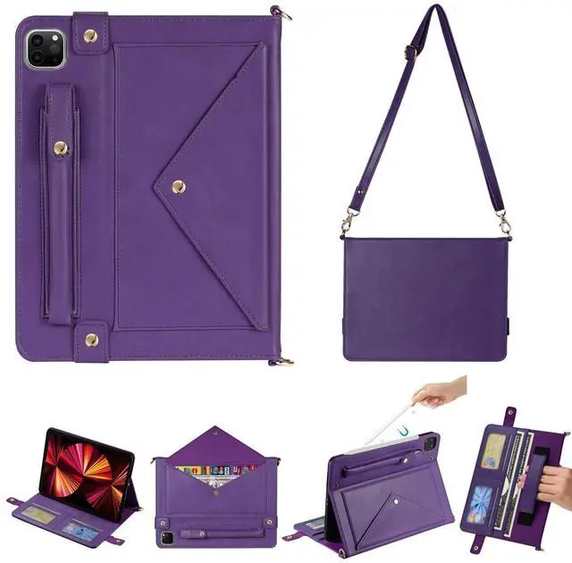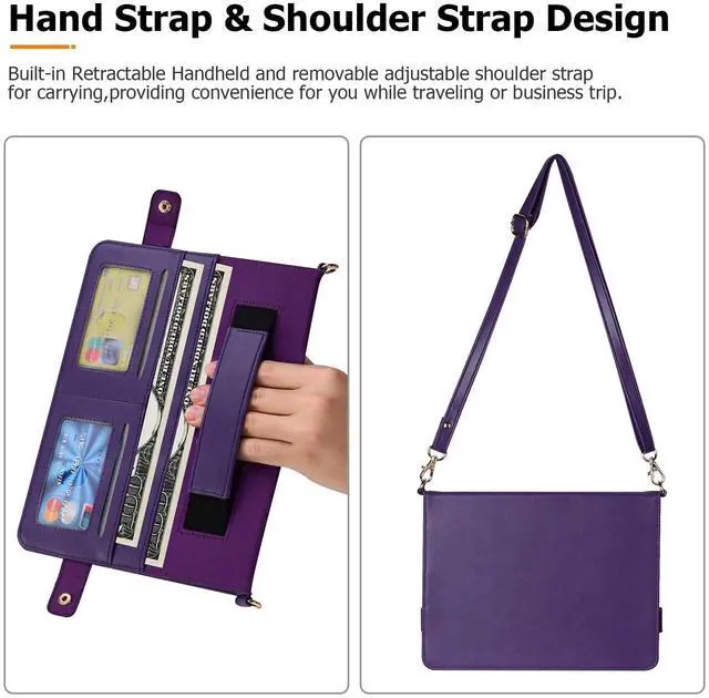 Dteck for iPad Pro 13" M4/M5 (2024/2025) Folio Case with Shoulder Strap, Multi Card Slots/Pockets, Pencil Holder, Adjustable Stand, Button Closure, PU Leather Protective Briefcase Design Case, Purple