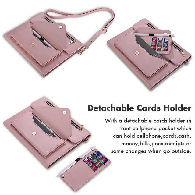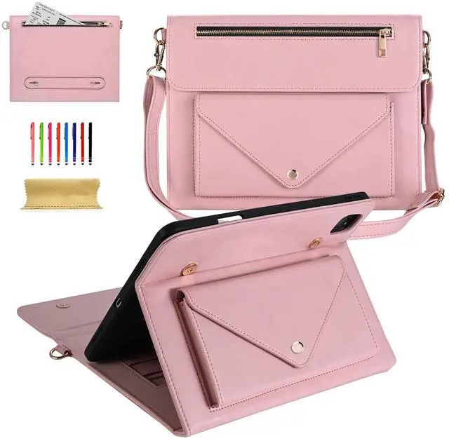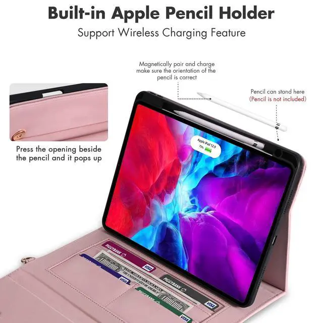 Wallet Bag Function]: Handbag-design folio case for iPad pro 11" (M4/M5) with multiple card slots, cash slots, zippered pockets, and a big front pocket, easy to keep IDs, credit cards, bills, receipts, earphones, charging cables, notes, or small items with tablet together, perfect for commuting, traveling, or outdoor use. ^^ [Pencil Holder with