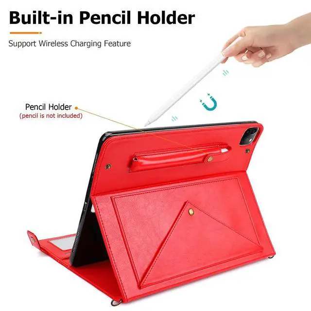 Pencil Holder]: The elastic hand strap allows you to securely grip your tablet when you fold the folio case to use it like a book. And the pencil holder securely stores your stylus, keeps it within easy reach and prevents loss.