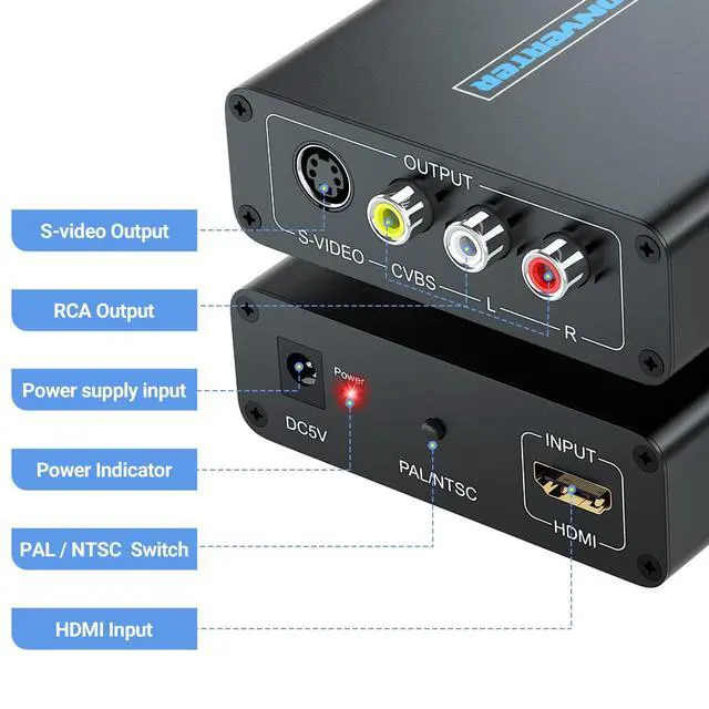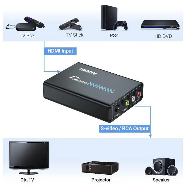 Audio output: R / L analog. ^^ Widely CompatibilityHDMI to Composite Svideo Converter, compatible with media palyer TV / STB/ VCR/ Blu-ray/ DVD/ PS3/ PS4/ Laptop/ TV/ Projector etc.