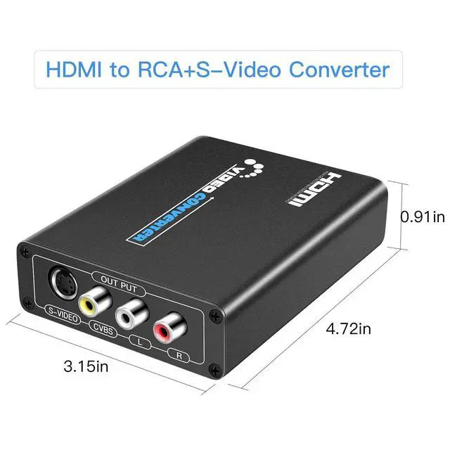 HDMI to S-video Converter Converts HDMI signal to S-video analog video and L / R audio. ^^ HDMI to RCA Composite ConverterConverts HDMI signal to RCA Composite AV video and L / R stereo audio signals. ^^ HDMI Input Resolution 480p (60Hz), 576p (50Hz), 720p(50Hz/60Hz), 1080i(50Hz/60Hz), 1080p(50Hz/60Hz). ^^ S-video &